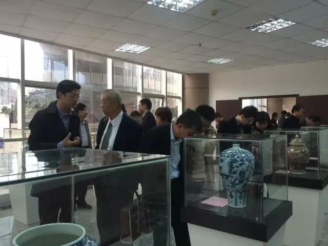 校友會等一行重點參觀了景德鎮(zhèn)陶瓷交易所辦公大樓、交易所展廳和托管中心,執(zhí)行董事周雪松為會議代表們重點介紹了景德鎮(zhèn)陶瓷交易所的企業(yè)文化、企業(yè)愿景、交易模式、交易藏品等各方面,加深了代表們對陶交所陶瓷實物交易電子平臺的了解。此外,會議代表們就陶交所“互聯(lián)網+文化+科技+金融”的創(chuàng)新商業(yè)模式與周總做了重要的交流與探討。之后,還參觀了古窯名俗博覽區(qū),中國陶瓷博物館。欣賞瓷都勝地眾多的陶瓷珍藏,并感受到傳承千年的精湛制瓷技藝。