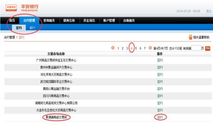 會員登錄系統(tǒng),進(jìn)入合約管理—簽約功能,系統(tǒng)返回所有交易市場,選擇【景德鎮(zhèn)陶瓷交易所】,點擊簽約按鈕進(jìn)行簽約操作。
