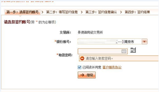 4、 選擇交易所名稱“景德鎮(zhèn)陶瓷交易所”,點(diǎn)擊“簽約”