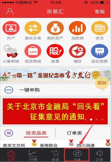 (2)步驟二:進(jìn)入“宗易匯”界面后點(diǎn)擊“交易”