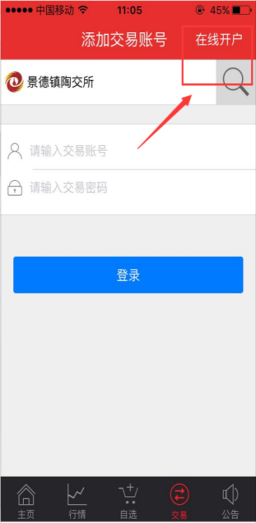 (8)步驟八:注冊(cè)“交易賬戶”成功后,返回步驟三,搜索“景德鎮(zhèn)陶交所”并輸入交易賬戶進(jìn)行登錄。