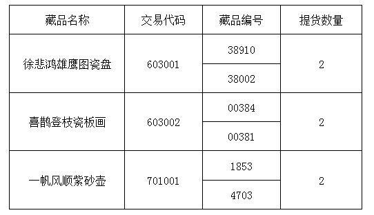 應(yīng)投資人會(huì)員申請(qǐng),經(jīng)本交易所對(duì)申請(qǐng)人信息核實(shí)以及出庫(kù)藏品復(fù)驗(yàn)后,提貨藏品已完成發(fā)貨,提醒廣大投資者注意盤面藏品數(shù)量變化。提貨藏品信息如下: