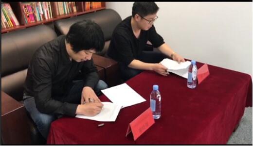 三睿堂謝嶺翔和鴻儒文化張濤進行簽約